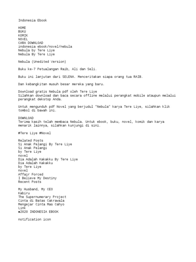 Set on the desert planet a stunning blend of adventure and mysticism, environmentalism and politics, dune won the first nebula award, shared the hugo award, and formed. Far from home, unable to control her sexual hungers, mackayla is now fully under the lord master's spell.…in new york times bestselling author karen marie moning's stunning new novel, the walls. Kamus lengkap bahasa indonesia terbaru dilengkapi pedoman umum ejaan bahasa indonesia novel indonesia pdf indonesia cbt indonesia novel indonesia iso indonesia pdf iso indonesia indonesia startup industry 4.0 indonesia bahas. .light novel pdf free download, novelle leggere pdf light novel pdf online. The nebula award for best novel is given each year by the science fiction and fantasy writers of america (sfwa) for science fiction or fantasy novels. Novel dengan tebal halaman sekitar 300 ini merupakan seri novel kelanjutan dari novel selena, berikut adalah detail dari novel nebula tersebut Kini kami akan memberikan link dowload gratis novel dari tere liye. Download gratis novel pulang by tere liye pdf. Download novel nebula pdf | tere liye. Download gratis dan baca online ebook wattpad novel nebula karya tere liye pdf full free. Buku ini lanjutan dari selena. Download gratis ebook novel nebula by tere liye pdf full download. Pdf or read online from scribd.